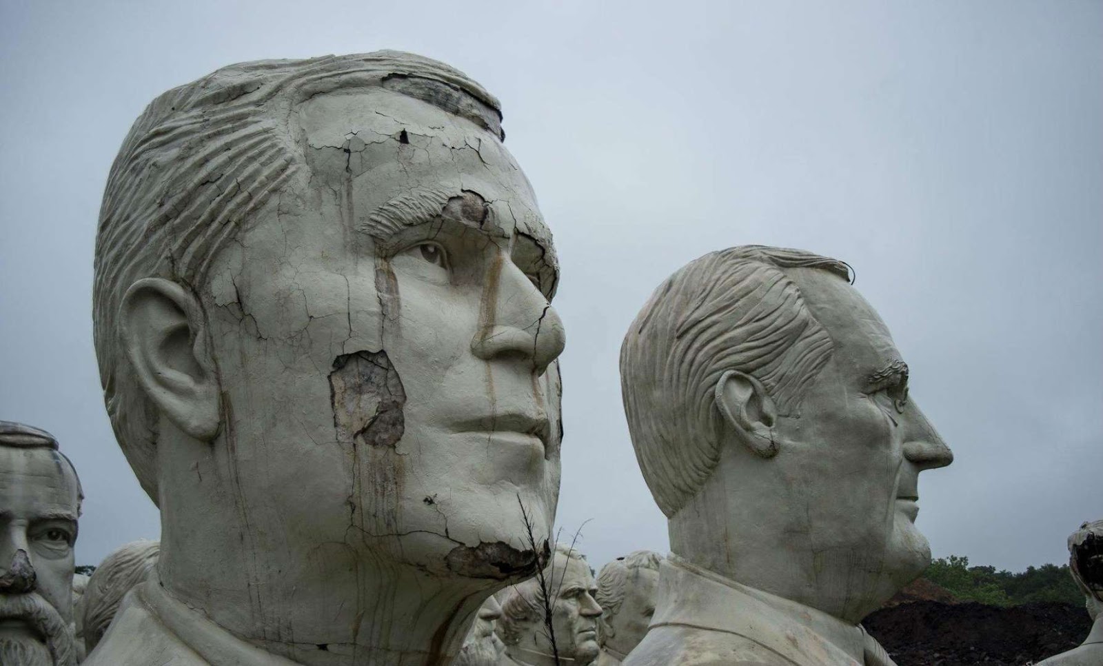 No meio do campo, a poucos quilómetros da pequena localidade de Williamsburg, no estado da Virgínia (EUA), abre-se uma clareira na floresta onde “descansam” abandonados os bustos gigantes (seis metros de altura) de 43 dos 44 presidentes norte-americano. Neste peculiar “cemitério” político só falta Barack Obama. O impulsor do “Parque dos Presidentes”, o artista David Adickes, ficou sem dinheiro e não conseguiu terminar com toda la estirpe do poder desde George Washington.