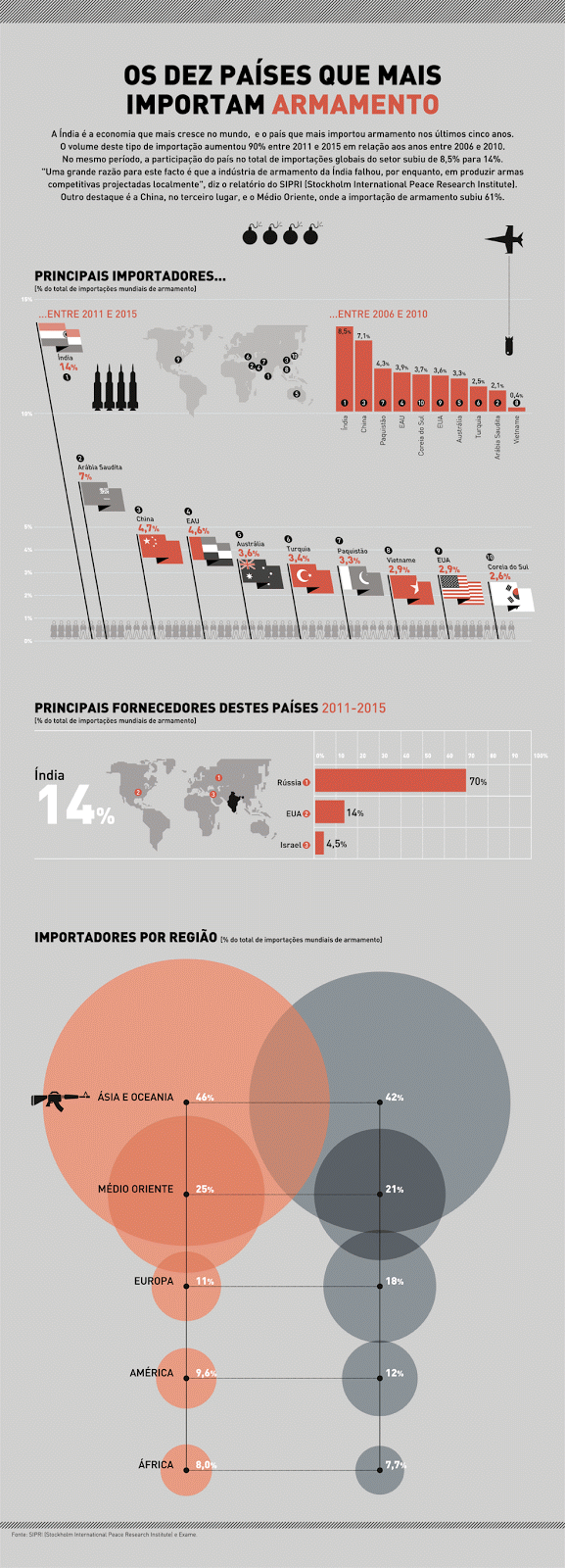 Conheça os dez países que mais importam armas no mundo